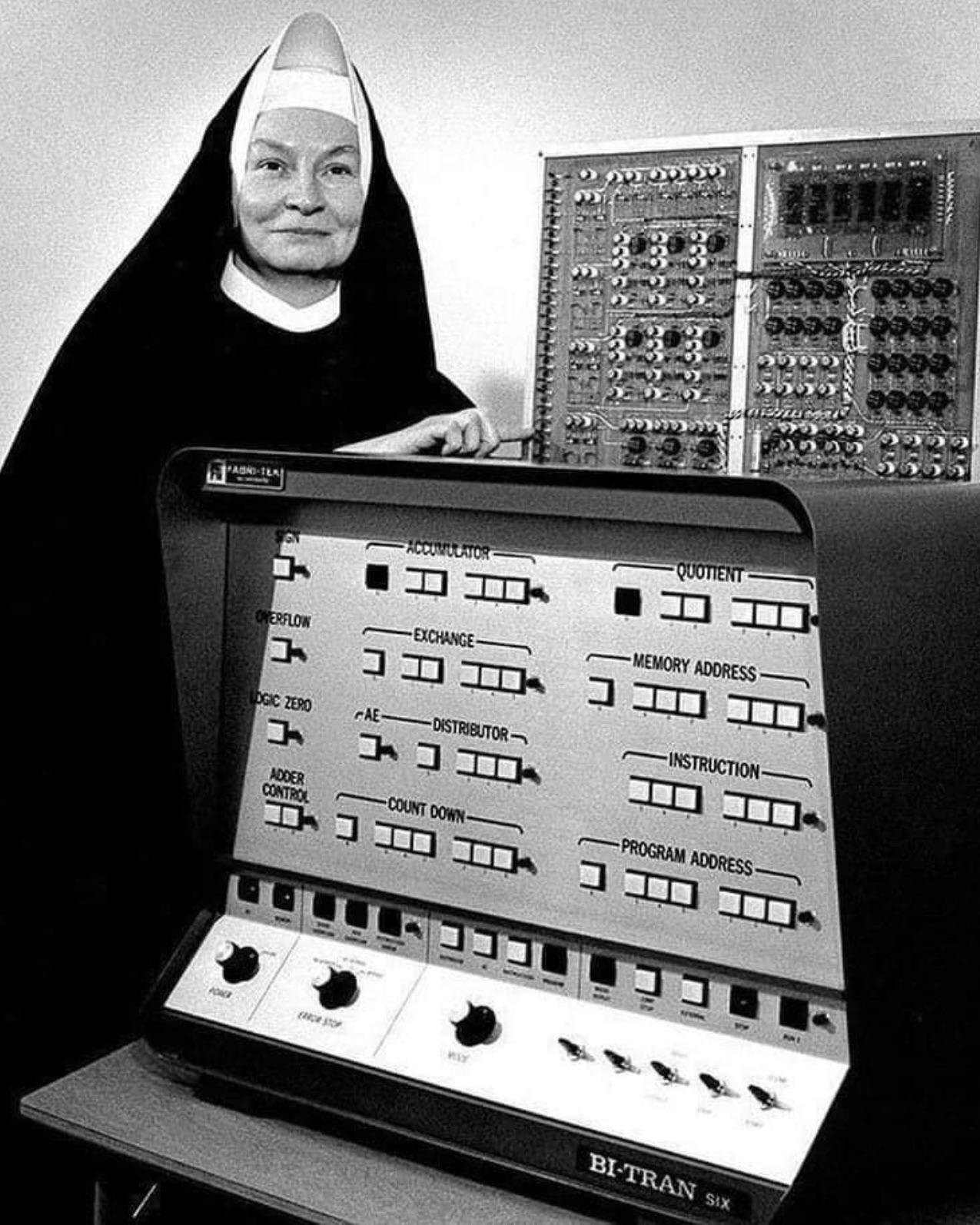 Sœur Mary Kenneth Keller est la première femme à obtenir un doctorat en informatique aux États-Unis. Elle participe - avec une douzaine d’autres d’étudiants - au développement du BASIC, une des premiers langages de haut niveau.